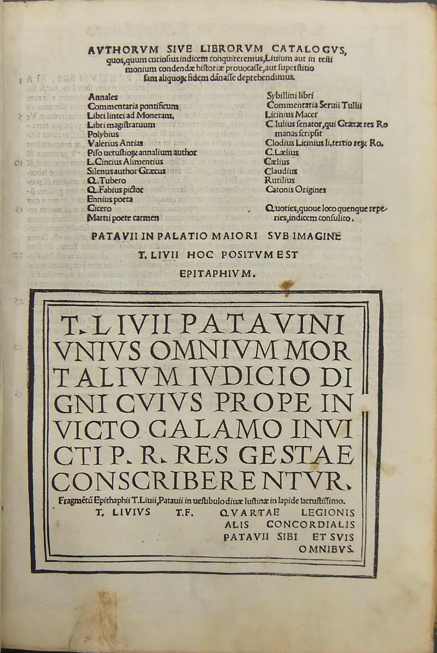 T. Liuius Patauinus historicus duobus libris auctus: cum L. Flori Epitome. Addito indice copioso et Leonardo Aretino de primo bello Punico. Ac imaginibus res gestas exprimentibus