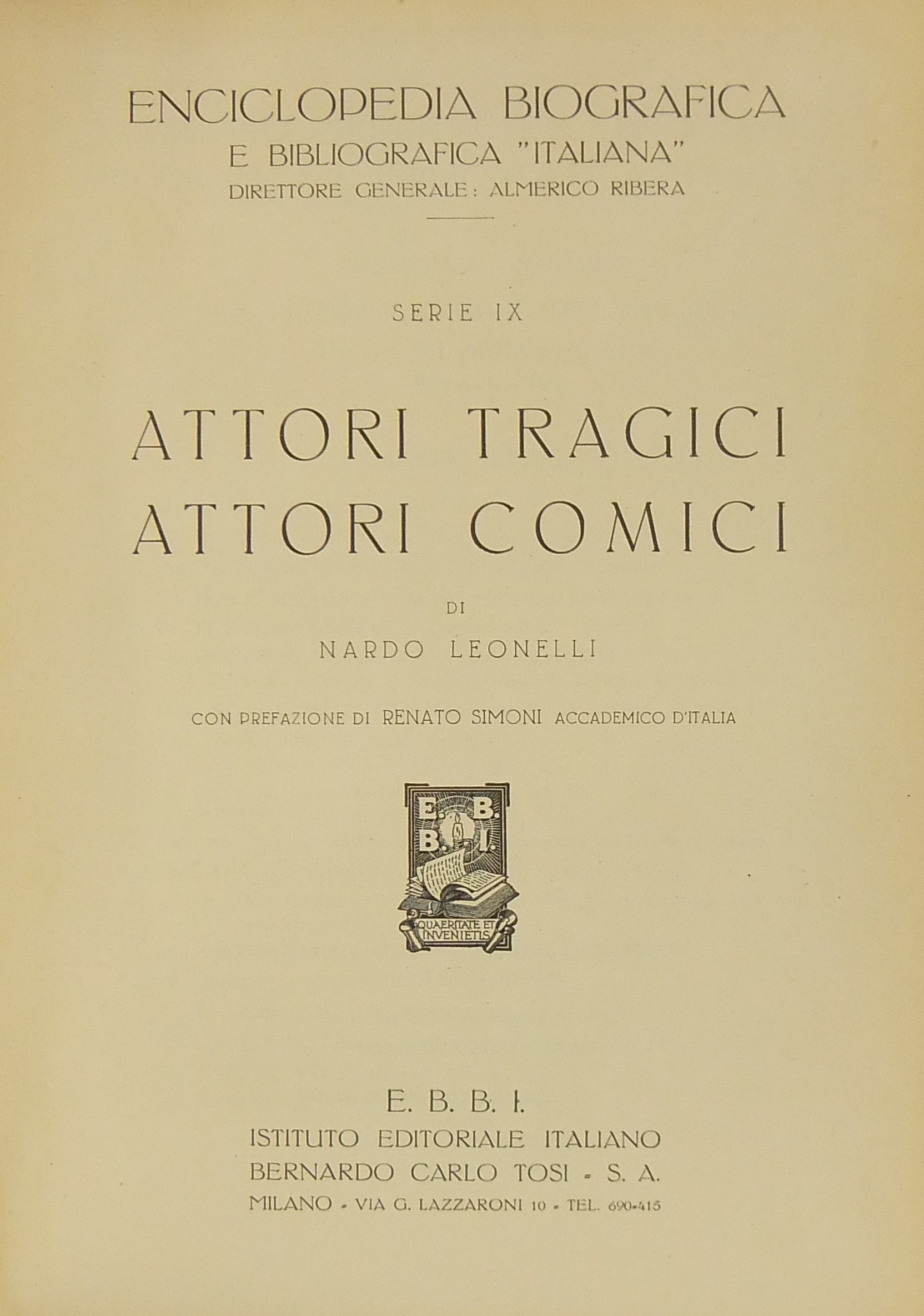 Attori tragici attori comici. Con prefazione di Renato Simoni. Vol. I - (A-K)