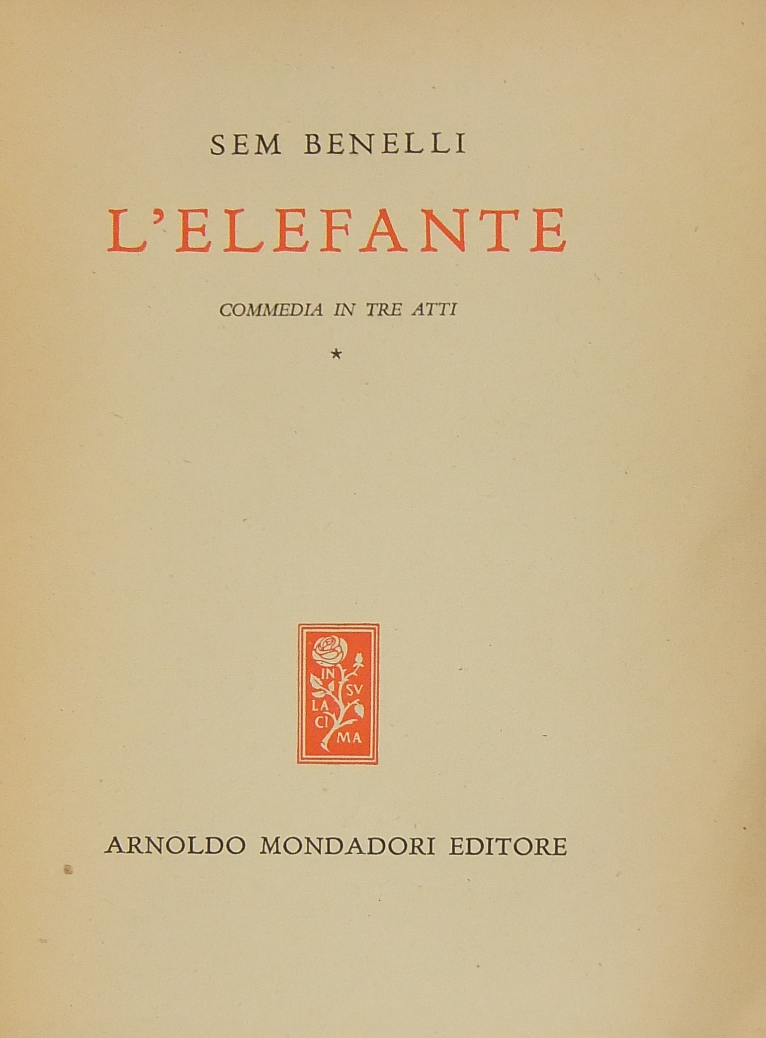 L'elefante. Commedia in tre atti