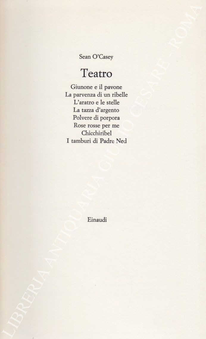 Teatro. Giunone e il pavone; La parvenza di un ribelle; L'aratro e le stelle; La tazza d'argento; Polvere di porpora; Rose rosse per me; Chicchiribel; I tamburi di Padre Ned