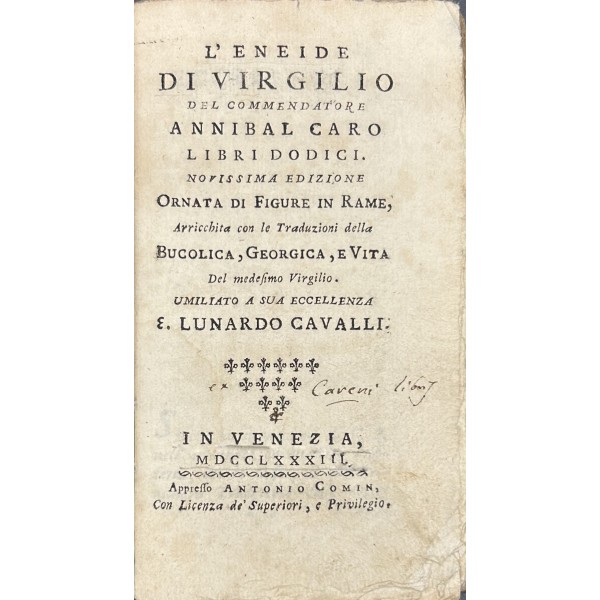 Titolo L'eneide di Virgilio del Commendatore Annibal Caro, Libri dodici.