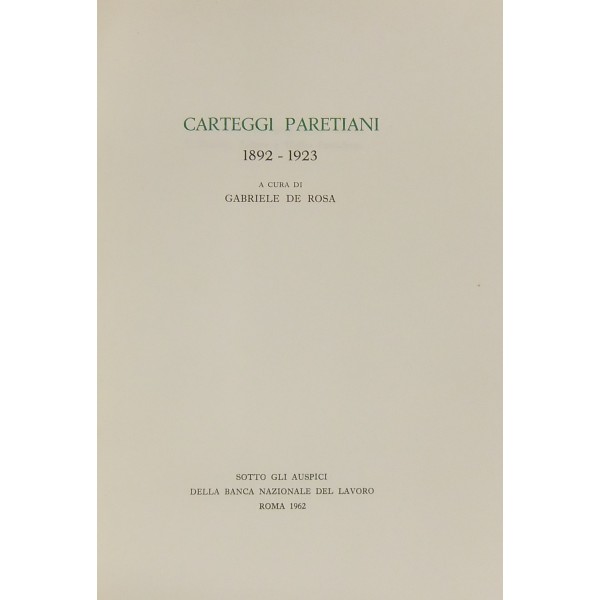Lettere a Maffeo Pantaleoni (1890-1923). A cura di G. De Rosa. Vol. I - 1890-1896; Vol. II - 1897-1906; Vol. III - 1907-1923; (Vol. IV) - Carteggi paretiani (Complemento dell'opera in tre volumi)