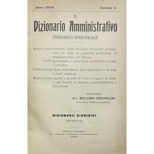 Dall\'Anno I all\'Anno XIX. Primo volume con dorso parzialmente staccato