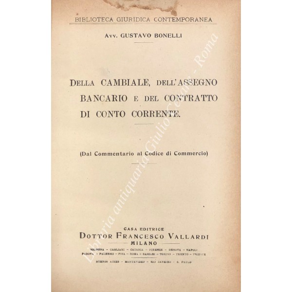 Titolo Della cambiale dell'assegno bancario e del contratto di conto corrente