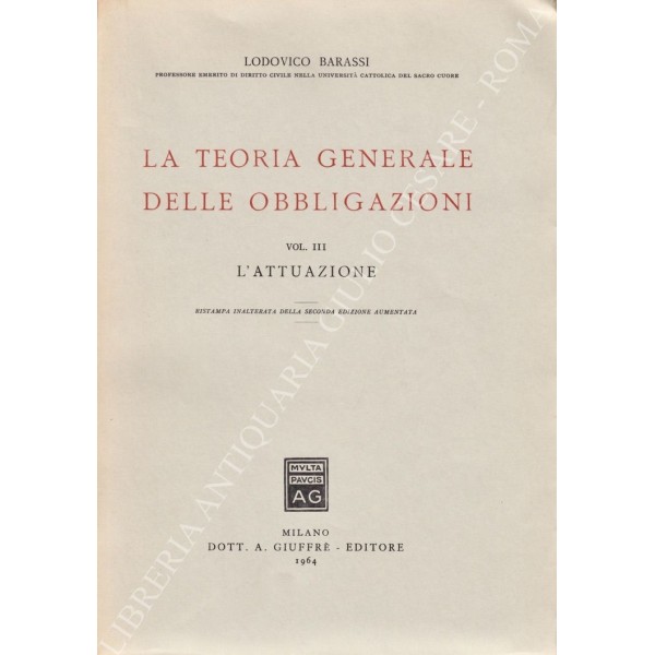 La teoria generale delle obbligazioni. Vol. I - La struttura; Vol. II - Le fonti; Vol. III - L'attuazione
