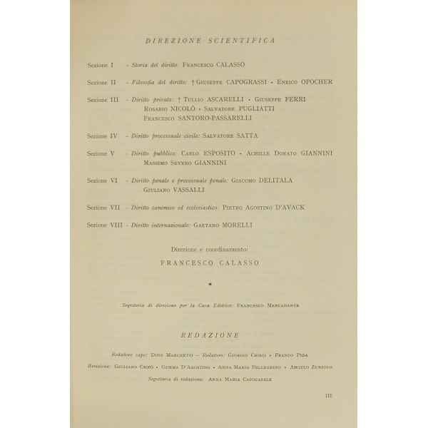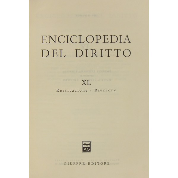 Enciclopedia del diritto. Vol. XL - Restituzione-Riunione. Diretta da Francesco Calasso poi (dal 1966) da Costantino Mortati e Salvatore Pugliatti poi anche (dal 1978) da Francesco Santoro-Passarelli