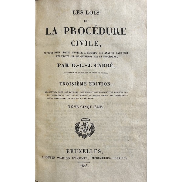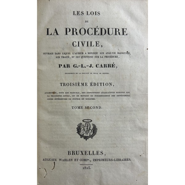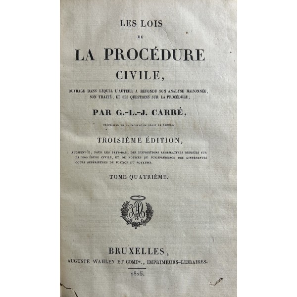 Les lois de la procedure civile. Ouvrage dans lequel l'auteur a refondu son analyse raisonnee, son traite, et ses questions sur la procedure.