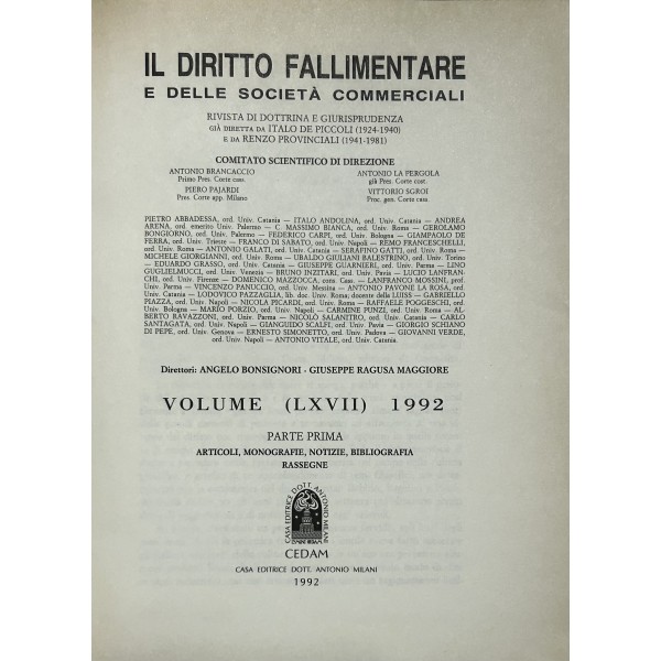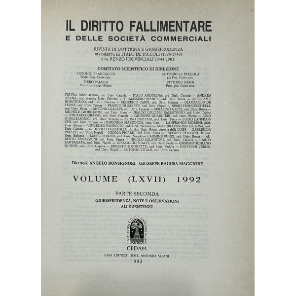 Il Diritto Fallimentare e delle società commerciali. Rivista di dottrina e giurisprudenza (già diretta da Italo De Piccoli 1924-1940 e Renzo Provinciali 1941-1981). Vol. LXVIII - 1993. Diretta da Angelo Bonsignori, Giuseppe Ragusa Maggiore