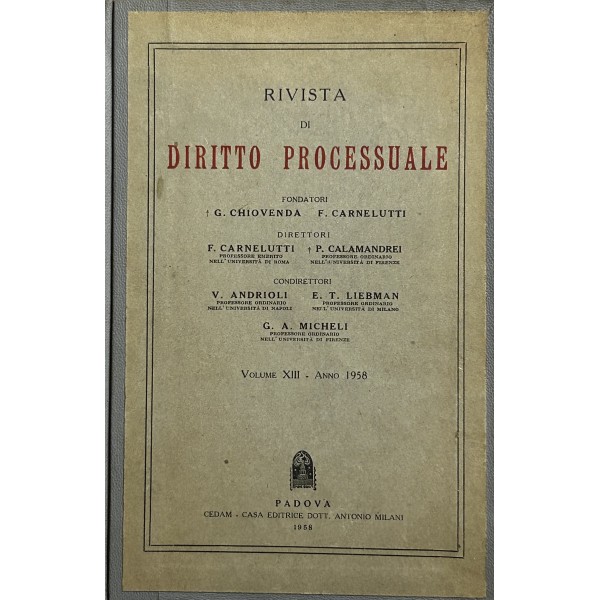Rivista di Diritto Processuale Civile. Annata 1943. Diretta da: Francesco Carnelutti, Giuseppe Chiovenda, Piero Calamandrei, Enrico Tullio Liebman. Anno XX (Prima Serie)