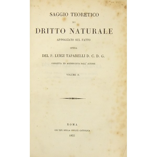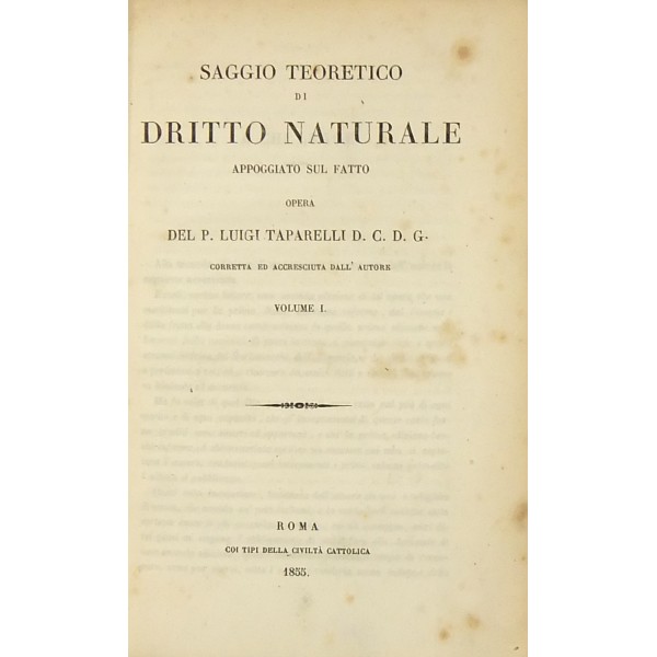 Saggio teoretico di dritto naturale appoggiato sul fatto. Opera del P. Luigi Taparelli D. C. D. G. corretta ed accresciuta dall'Autore