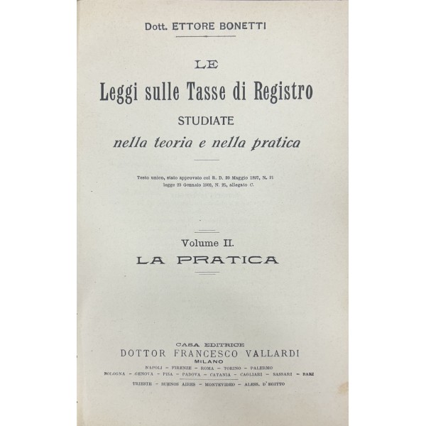 Le leggi sulle tasse di registro studiate nella teoria e nella pratica. Vol. I - La teoria; Vol. II - la pratica