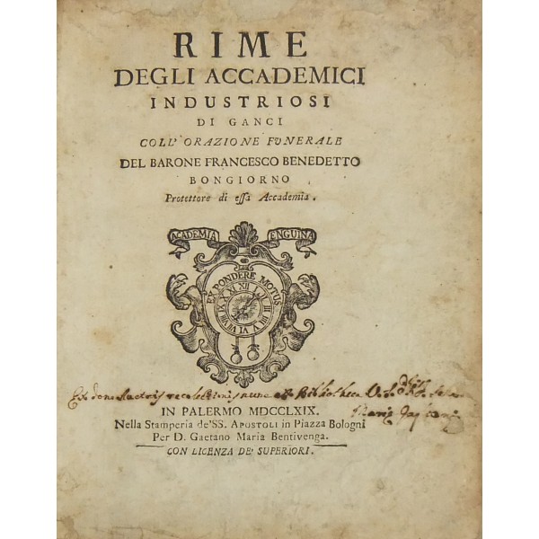Rime degli accademici industriosi di Ganci coll'orazione funerale del Barone Francesco Benedetto Bongiorno protettore di essa Accademia