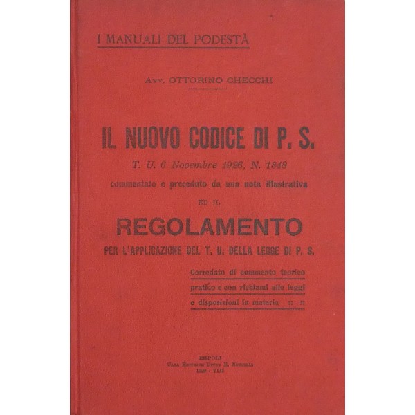 Il nuovo Codice di P.S. commentato e preceduto da una nota illustrativa