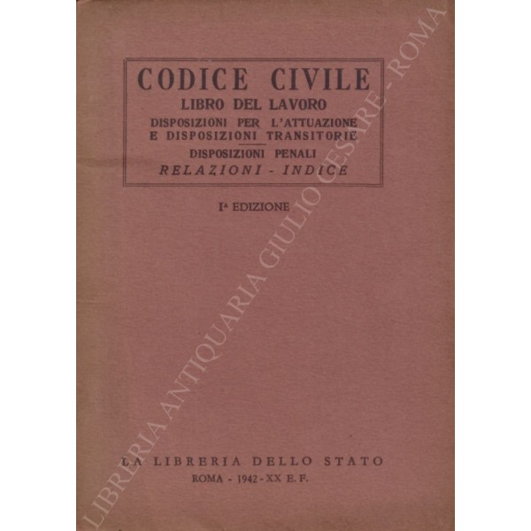 Codice civile. Libro del lavoro. Disposizioni per l'attuazione e disposizioni transitorie. Disposizioni penali. Relazioni. Indice