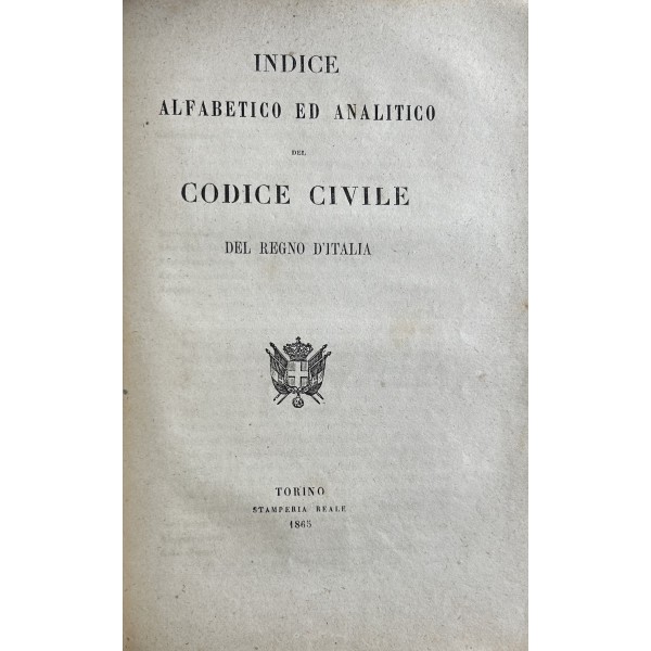 Codice civile del Regno d'Italia. UNITO A: Indice alfabetico ed analitico del Codice civile del Regno d'Italia