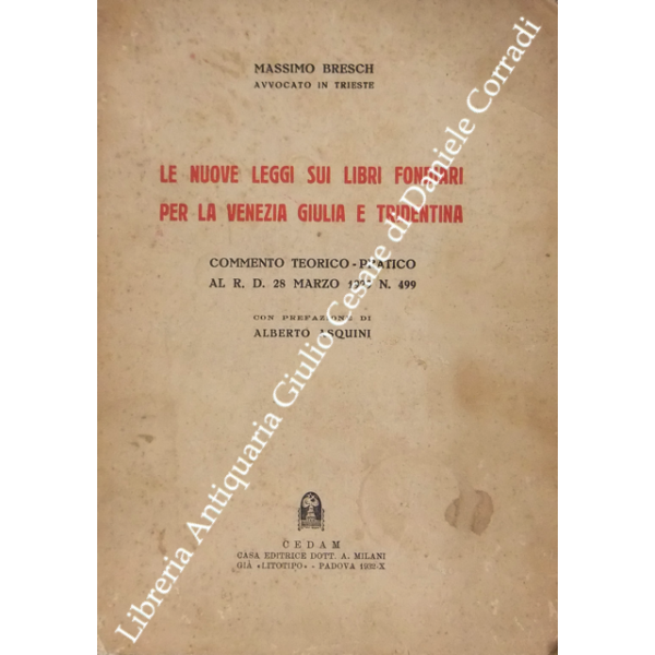 Le nuove leggi sui libri fondiari per la Venezia Giulia e Tridentina. Commento teorico-pratico al R. D. 28 marzo 1929 N. 499. Con prefazione di Alberto Asquini
