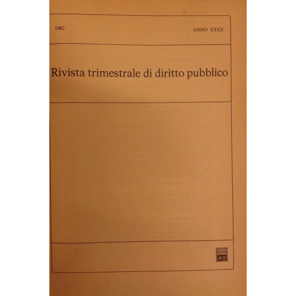Rivista trimestrale di diritto pubblico. Fondata da Guido Zanobini. Diretta da Giovanni Miele e Massimo Severo Giannini. Anno XXXII - 1982