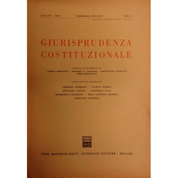 Giurisprudenza Costituzionale. Fondata da Carlo Esposito, Massimo Severo Giannini, Costantino Mortati. Anno XIV - 1969