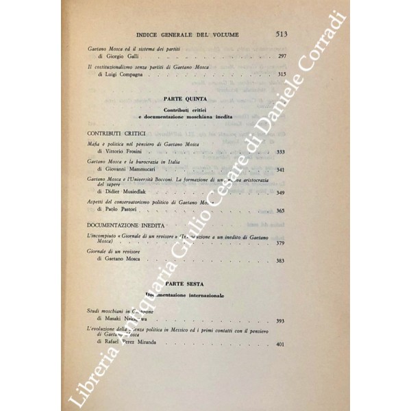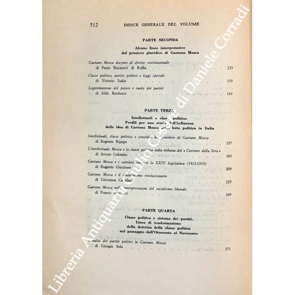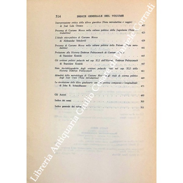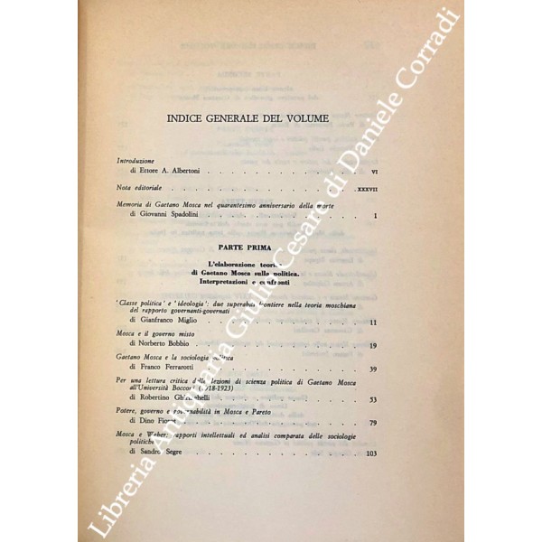 Scritti di: Albertoni, Bardusco, Biscaretti di Ruffia, Bobbio, Cavallari, Colombo, Compagna, Ferrarotti, Fiorot, Frosini, Galli, Ghiringhelli, Guccione, Invernici, Italia, Kozicki, Mammucari, Miglio, Mosca, Musiedlak, Nakagawa, Orozco, Pastori, Perez Miranda, Ripepe, Schmidhauser, Segre, Sekulovic, Sola, Spadolini