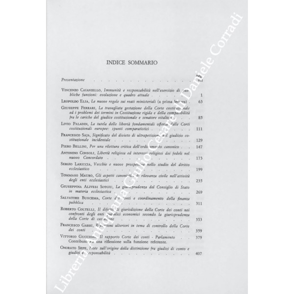 Scritti di: Alivesi Sotgiu, Bellini, Buscema, Caianiello, Coltelli, Consoli, Elia, Ferrari, Garri, Guccione, Lariccia, Mauro, Paladin, Saja, Sepe.