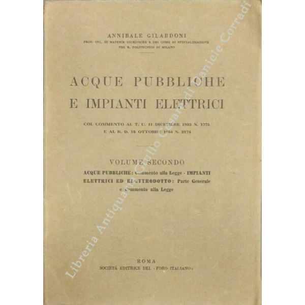 Acque pubbliche e impianti elettrici. Col commento al T.U. 11 Dicembre 1933 n. 1775 e al R.D. 18 Ottobre 1934 n. 2174. Vol. I - Acque pubbliche. Parte generale; Vol. II - Acque pubbliche: Commento alla legge. Impianti elettrici ed elettrodotto: parte generale e commento alla legge; Vol. III - Acque pubbliche e impianti elettrici. Diritto processuale. Legislazione complementare e integrativa a tutto Novembre 1936. Commento alle istruzioni 18 Marzo 1936