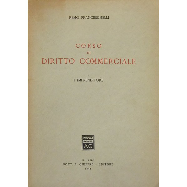 Corso di diritto commerciale. Vol. I - L'imprenditore (unico pubblicato)