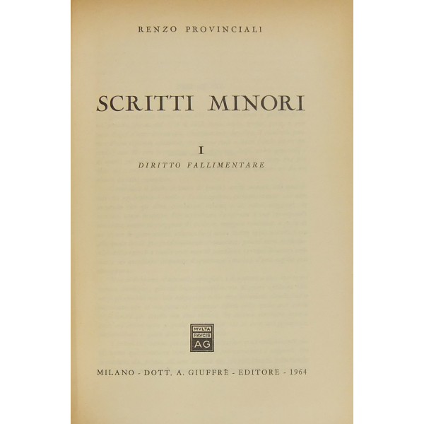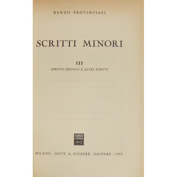 Scritti minori. Vol. I - Diritto fallimentare. Vol. II - Diritto processuale civile. Vol. III - Diritto privato e altri scritti