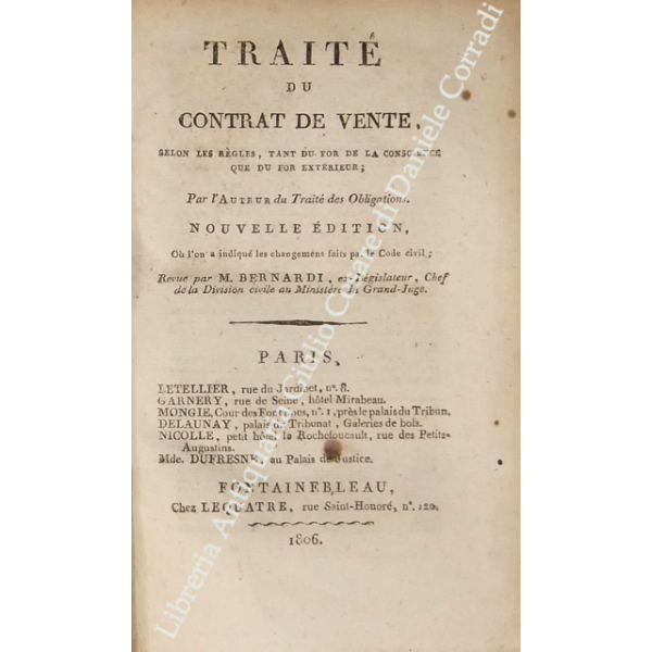 Traite du contrat de vente selon les regles, tant du for de la conscience que du for exterieur