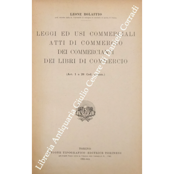 Leggi e usi commerciali. Atti di commercio. Dei commercianti. Dei libri di commercio. (Art. 1-28)