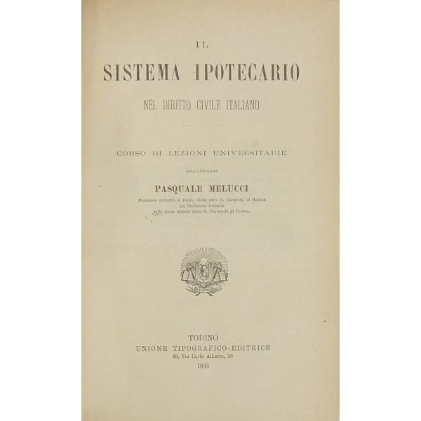 Il sistema ipotecario nel diritto civile italiano. Corso di lezioni universitarie