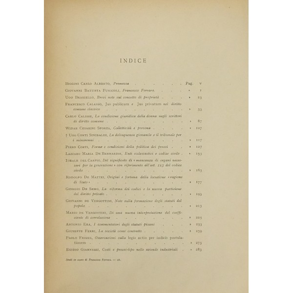 Ritratto fotografico di Ferrara ad inizio del primo volume. Scritti di: Biggini, Brasiello, Calasso, Calisse, Cesarini Sforza, Conti Sinibaldi, Corti, De Bernardis, Del Carpio, De Mattei, De Semo, G. De Vergottini, M. De Vergottini, Era, G. Ferri, Frezza, G.B.Funaioli, Giannessi, G.Grosso, Iannaccone, Massart, G.Miele, M.Miele, Mossa, Nicoletti, Perticone, A.Santoro, Sensini, Trifone, Zanobini, Zerboglio.