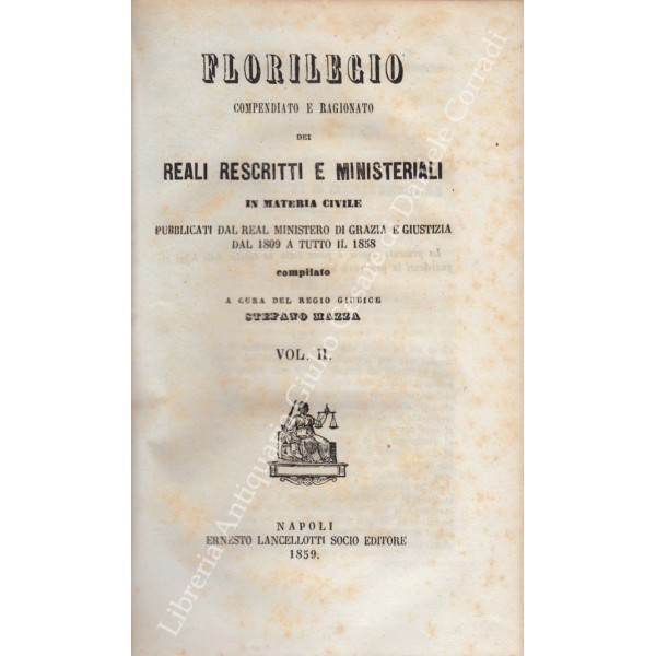 Florilegio compendiato e ragionato dei reali rescritti e ministeriali in materia civile pubblicati dal Real Ministero di Grazia e Giustizia dal 1809 a tutto il 1858