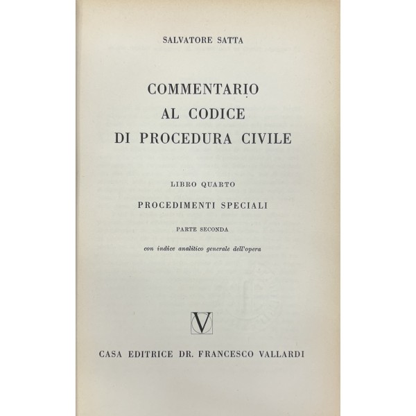 Commentario al Codice di procedura civile. Vol. I - Disposizioni generali. Vol. II (2 tomi) - Processo di cognizione. Vol. III - Processo di esecuzione. Vol. IV (2 tomi) - Procedimenti speciali