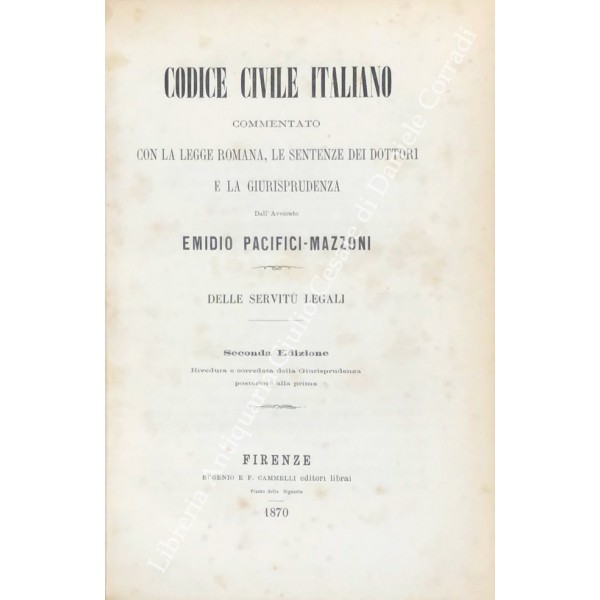 Codice civile italiano commentato con la legge romana, le sentenze dei dottori e la giurisprudenza. Delle servitù legali