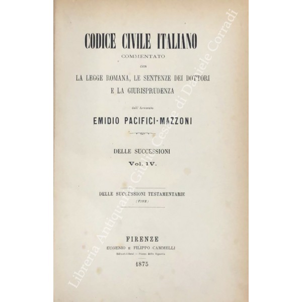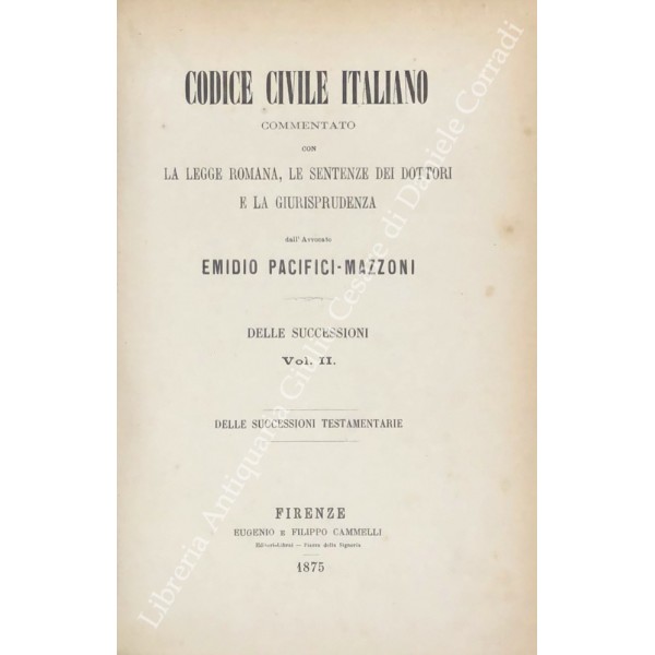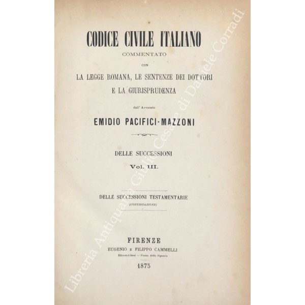 Codice civile italiano commentato con la legge romana, le sentenze dei dottori e la giurisprudenza. Delle successioni. Vol. II, III e IV - Delle successioni testamentarie