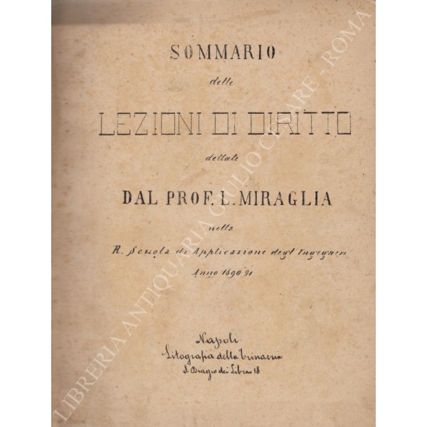 Sommario delle lezioni di diritto dettate dal Prof. L. Miraglia nella R. Scuola di Applicazione degl'Ingegneri