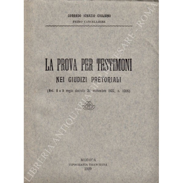 La prova per testimoni nei giudizi pretoriali (Art. 8 e 9 regio decreto 20 settembre 1922, n. 1316)