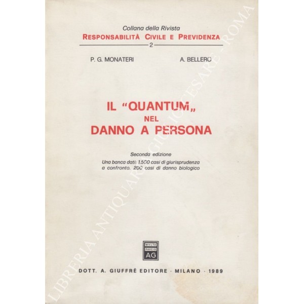 Il "quantum" nel danno a persona. Una banca dati: 1500 casi di giurisprudenza a confronto. 200 casi di danno biologico
