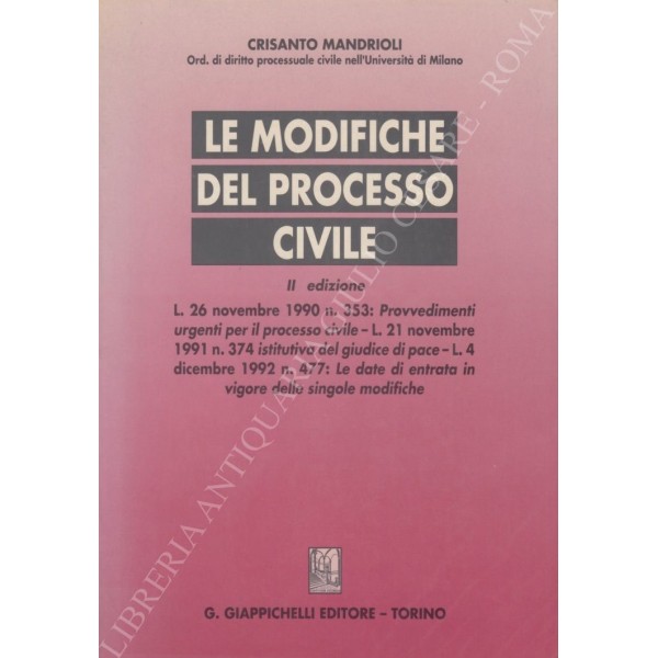 Le modifiche del processo civile. L. 26 novembre 1990 n. 353: Provvedimenti urgenti per il processo civile - L. 21 novembre 1991 n. 374 istitutiva del giudice di pace - L. 4 dicembre 1992 n. 477: Le date di entrata in vigore delle singole modifiche