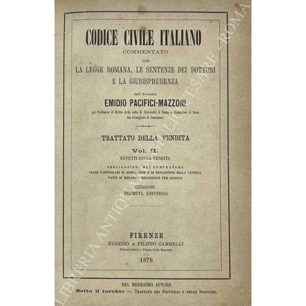 Il Codice civile italiano commentato con la legge romana, le sentenze dei Dottori e la giurisprudenza. Trattato della vendita