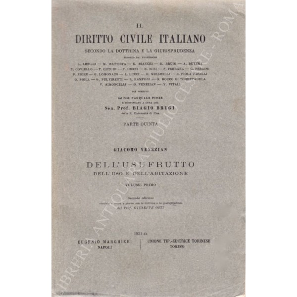Dell'usufrutto dell'uso e dell'abitazione. Vol. I - L'usufrutto e le sue modificazioni. Gli usi pubblici e gli usi collettivi. Costituzione dell'usufrutto; Vol. II - Diritti e obblighi dell'usufrtuttuario. L'usufrutto nel patrimonio dell'usufruttuario. Estinzione dell'usufrutto. L'uso e l'abitazione