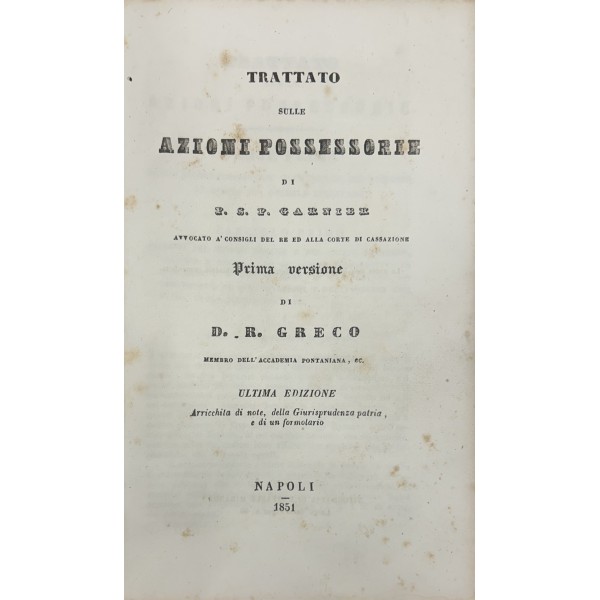 Trattato sulle azioni possessorie. Prima versione di R. Greco