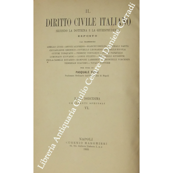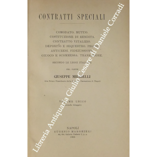 Contratti speciali. Comodato. Mutuo. Costituzione di rendita. Contratto di vitalizio. Deposito e sequestro. Pegno. Anticresi. Fideiussione. Giuoco e scommessa. Transazione. Secondo le leggi italiane
