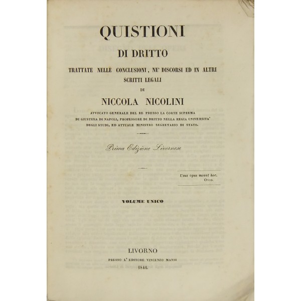 Quistioni di diritto. Trattate nelle conclusioni ne' discorsi ed in altri scritti legali