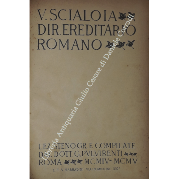 Diritto ereditario romano. Lezioni stenografate e compilate dal Dott. G. Pulvirenti 1904-1905