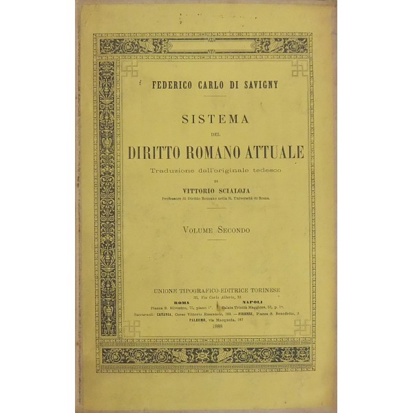 Sistema del diritto romano attuale. Traduzione dall'originale tedesco di Vittorio Scialoja