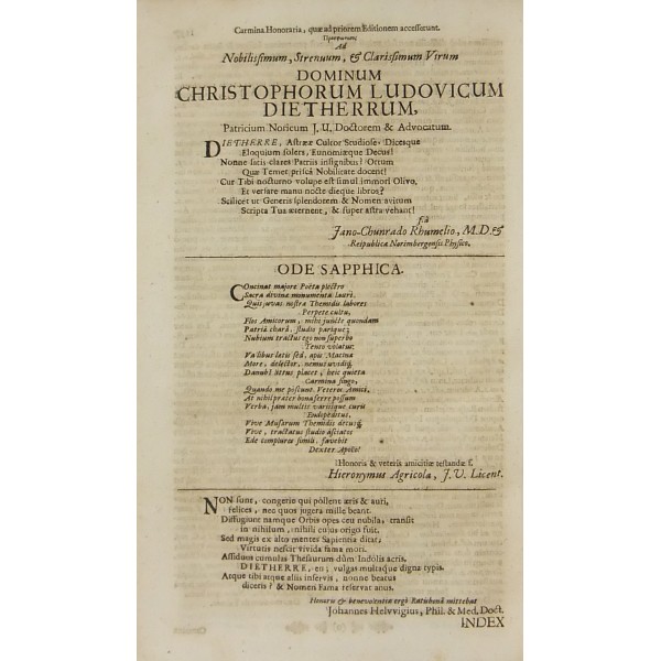 Christophori Besoldi... Thesaurus practicus. Non solum explicationem terminorum atque clausularum in aulis et dicasteris usitatarum continens sed et inprimis quam plurima ad Sacri Romani Imperii tam ecclesiasticum quam politicum statum mores item historiam linguam et Antiquitatem Germanicam pertinentia edocens simulque nonnulla tam vetera quam nova Documenta referens Editio nova auctior et emendatior infinitis locis ex recentioribus autoribus practicis historicis politicis philologicis manuscriptis Synoptica item materiam regalium continente tractatione Dissertationibus Theorico-practicis modum tam in Civilibus quam Criminalibus Referendi seu votandi Processumque Judiciarum compendiose et nervose exhibentibus nec non illustribus aliquot Responsis aucta et locupletata studio et opera Christophori Ludovici Dietherr
