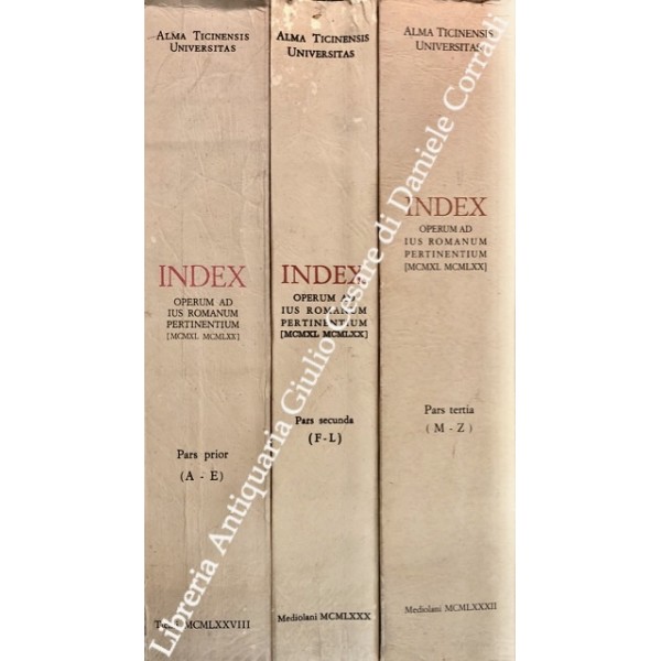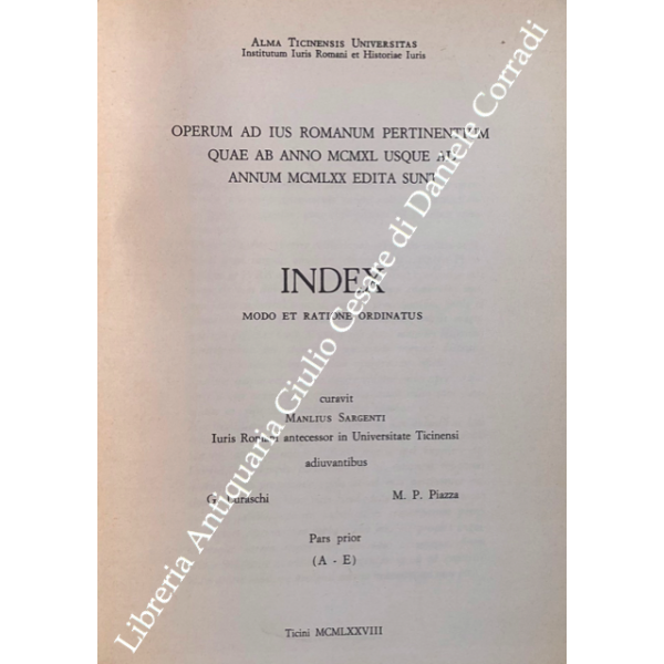 Index. Modo et ratione ordinatus. Operum ad ius romanum pertinentium quae ab anno MC;XL usque ad annum MCMLXX edita sunt. Pars prior (A-E); Pars secunda (F-L); Pars tertia (M-Z)