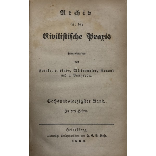 Archiv fur die Civilistische Praxis. Herausgegeben...