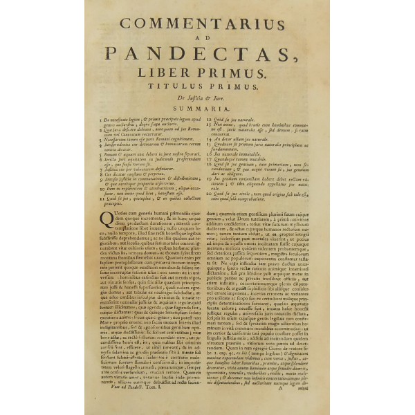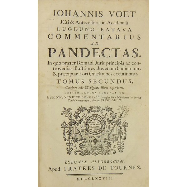 Commentarius ad Pandectas. In quo praeter Romani Juris principia ac controversias illustriores Jus etiam hodiernum & praecipuae Fori Quaestiones excutiuntur